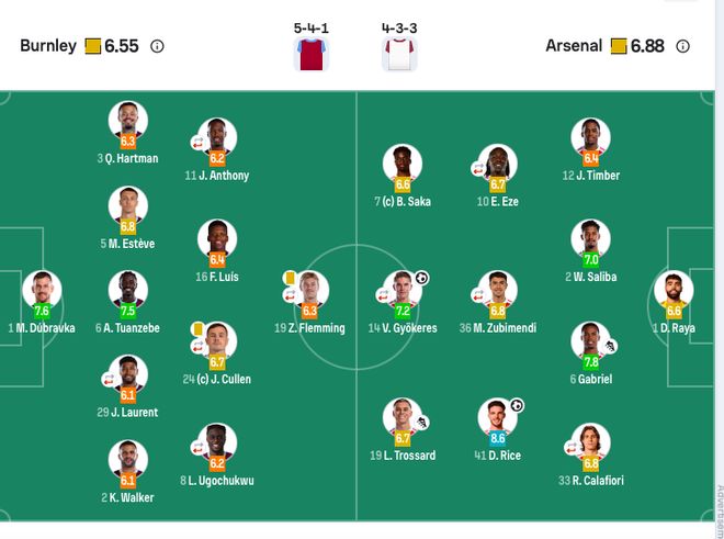 伯恩利首发:1-杜布拉夫卡、2-沃克、3-哈特曼、5-艾斯特福、6-图安泽贝、8-乌戈丘库(62’17-查奥纳)、16-弗洛伦蒂诺、24-库伦(82’10-爱德华兹)、29-劳伦特(76’28-汉尼拔)、11-杰顿·安东尼(62’7-布鲁恩·拉尔森)、19-弗勒明(76’27-布罗亚)。